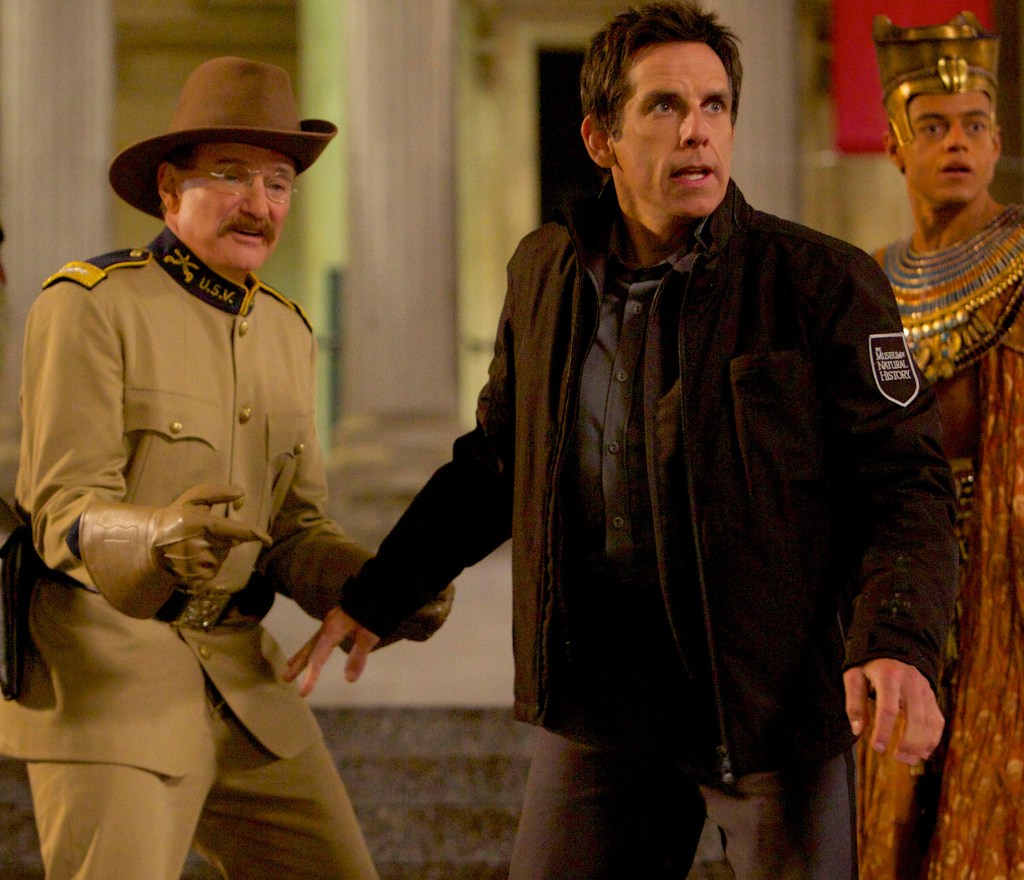 The second film takes place two years later and the displays are getting packed up, ready to be shipped off to the Federal Archives for permanent storage. Larry is now the CEO of Daley Devices, thanks to inventions he’s come up with inspired by his time as a night guard. He visits the museum and speaks to Teddy and finds out what is going on. The museum board wants to see progress, so they are installing lots of new holographic displays. Teddy will remain in New York, as well as Akmenrah and the tablet. Meaning, it is the last night many of the characters will be brought to life. Some blame Larry for not being around for the past year or so to speak for the museum; he’s too busy on his phone.