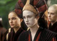 Anakin wins the podrace [space Nascar] and Shmi encourages him to go with Qui-Gon. As any nine-year-old boy would, he doesn’t want to say goodbye to his mother; but this is his chance to live out his dreams of seeing the stars. On their way back to the ship, Qui-Gon encounters a man dressed in black, carrying a red lightsaber. We know that this is Darth Maul, Lord Sidious’s apprentice, tasked with finding the Queen and Jedi. Qui-Gon manages to escape and introduces “Anakin Skywalker, meet Obi-Wan Kenobi” (and those of us familiar with the original movies see foreshadowing!) On Courscant, Queen Amidala meets with Naboo Senator Palpatine and Chancellor Valorum to discuss politics; Palpatine does not have much faith that their situation will be dealt with swiftly. He urges Amidala to consider voting out Valorum.