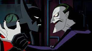 As already stated, Terry McGinnis as Batman makes a few more appearances in the DC Animated Universe. He shows up in an episode of Static Shock, where a young Static time-travels to the future, meeting old Bruce Wayne and the new Batman (and having to help break his future-self free from the Kobra gang). He also appears as part of the two-part episode Once and Future Thing in Justice League Unlimited. In the first half, Batman (Bruce Wayne), the Green Lantern, and Wonder Woman chase a thief named Chronos to the past, specifically, the Wild West. They then end up following him to the future in the second half and there meet the older Static, Warhawk (who happens to be the Green Lantern’s son), and younger Batman. Also featured are the new Jokerz gang that were introduced in Return of the Joker…with some upgrades. The heroes manage to escape, after taking a beating and Batman leads them to the new Justice League headquarters, the old Hamilton Hill High School. The Watchtower had been attacked and most of the members killed. Old Bruce enters at that moment to keep everyone from dwelling on the bad; they’ve got a mission to attend to. Bruce faces his younger counterpart and comments “surprised to see me?” “A little,” original Batman remarks, though he’s more surprised to see he lived that long. Terry quips “Batman, Bruce Wayne, Bruce Wayne, Batman…or, have you met?” They deliver “not now!” at the same time, so he gripes “what did they use to call it, stereo?”