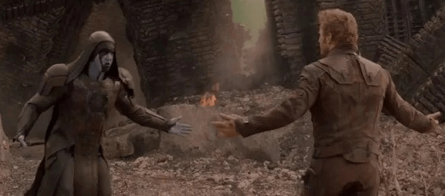It’s actually a diversion. They hit his war hammer, which releases the stone. Peter grabs it. Gamora then grabs his hand, and Drax grabs his arm. They destroy Ronan and manage to still be standing afterwards. Gamora puts the stone into a new orb, which they have to hand over to Yandu, with the warning not to open. Again, Kraglin makes a comment about how it was good that they didn’t deliver Peter to his father, like they were hired to. Except, Peter switched the orb; Yandu’s has a troll in it. Peter delivers the real Infinity Stone to Nova Corps, who also point out that Peter is only half from Earth; his father was something else and that may explain why he was able to hold the Infinity Stone and not blow up.