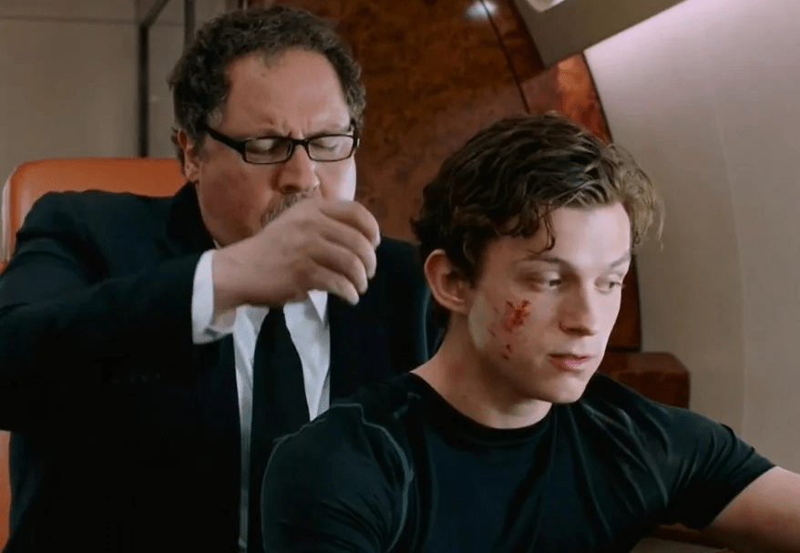 The teen lives, managing to collapse into a seat on the train, then passes out. He wakes up in a jail cell in the Netherlands with several kind men, who even covered him in one of their shits because he looked cold. Peter breaks the lock on the cell so he can leave (and the other men just close the door back up and stay put; Peter’s also lost the black suit to his guard, who is on the phone with his wife). He then finds another kind man who lends him his phone so he can call Happy. But Peter is so freaked out by the time Happy arrives, that he demands Happy tell him something only he could know. Peter initiates a hug with the man, who then patches Peter up. Peter blames himself for what is going on, then immediately apologizes for yelling at Happy. He admits he misses Tony; “everywhere I go, I see his face, and the whole world is asking who’s going to be the next Iron Man and I don’t know if that’s me.” Happy agrees that Peter is not the next Iron Man; no one can live up to Iron Man, not even Tony himself. He was a mess and second-guessed everything, except for Peter. “I don’t think Tony would have done what he did if he didn’t know that you were going to be here after he was gone.” [This is my favorite scene of the film; and don’t you just want to pull Peter into a hug?]